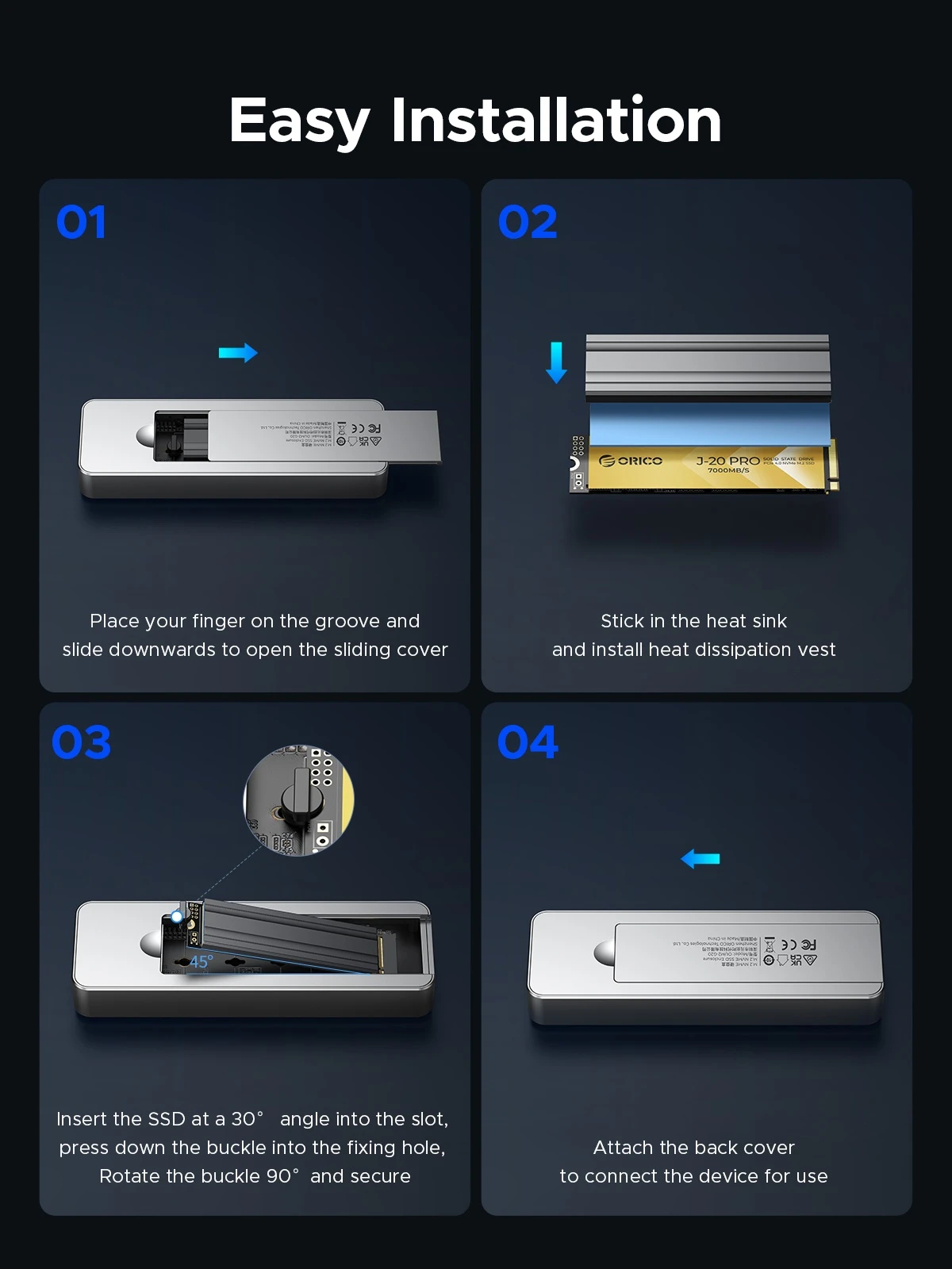 Orico Orico външна кутия за диск Storage Case M.2 NVMe M-key 10 Gbps M2PV-C3-BK-BP - M2PV-C3-BK-EP