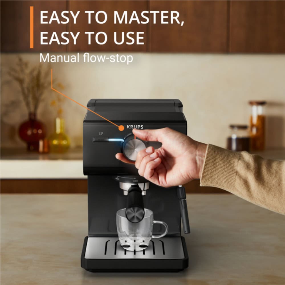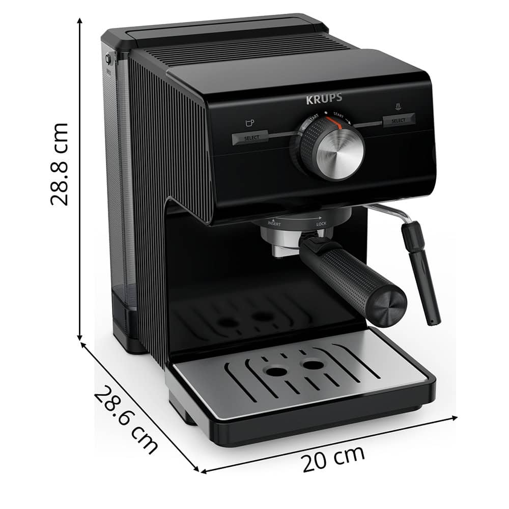 Кафемашина еспресо Krups XP381810, 1400W, 15 bar, 2 l. обем на резервоара за вода, черна