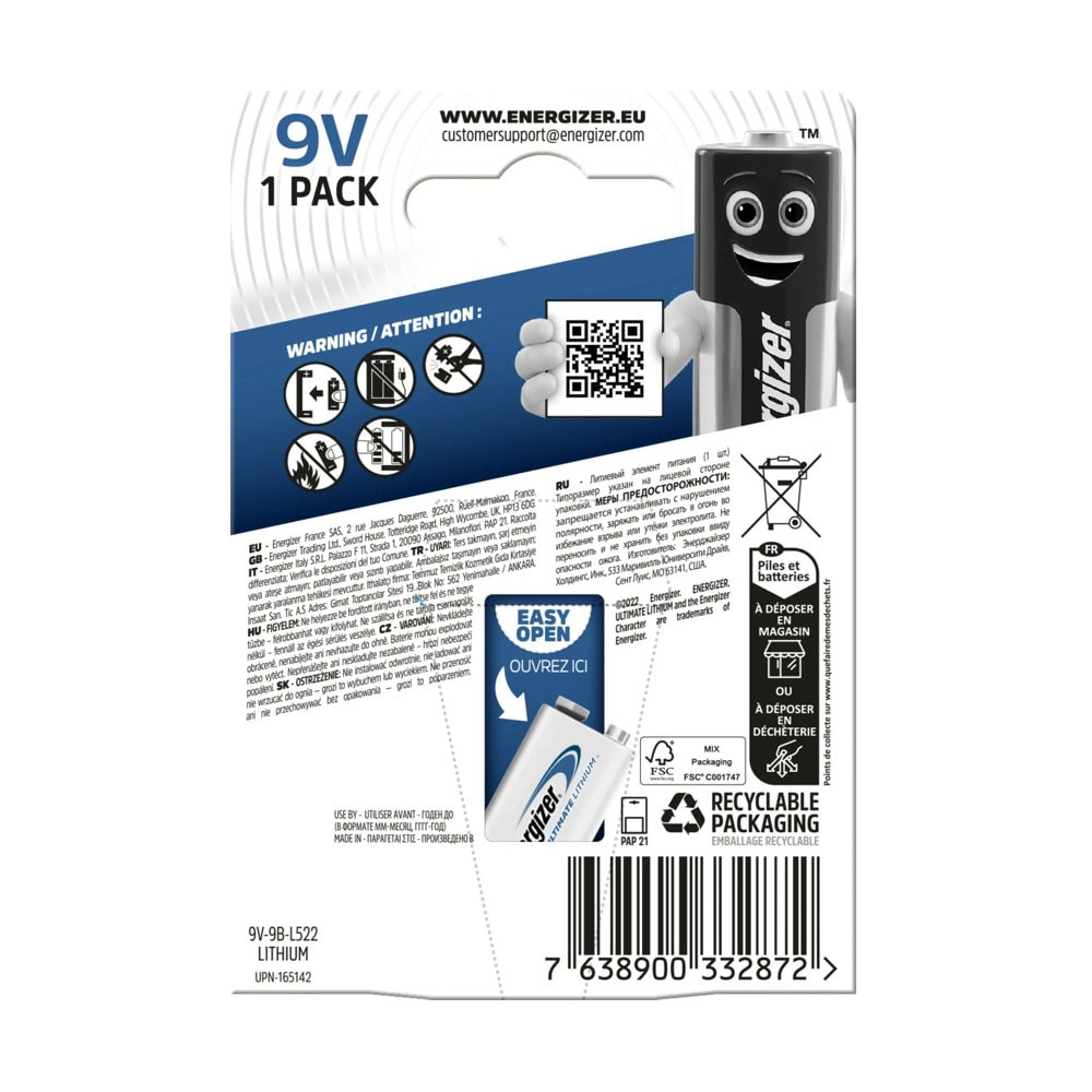 Батерия литиева Energizer Ultimate Lithium, L522, 9V, 1бр.