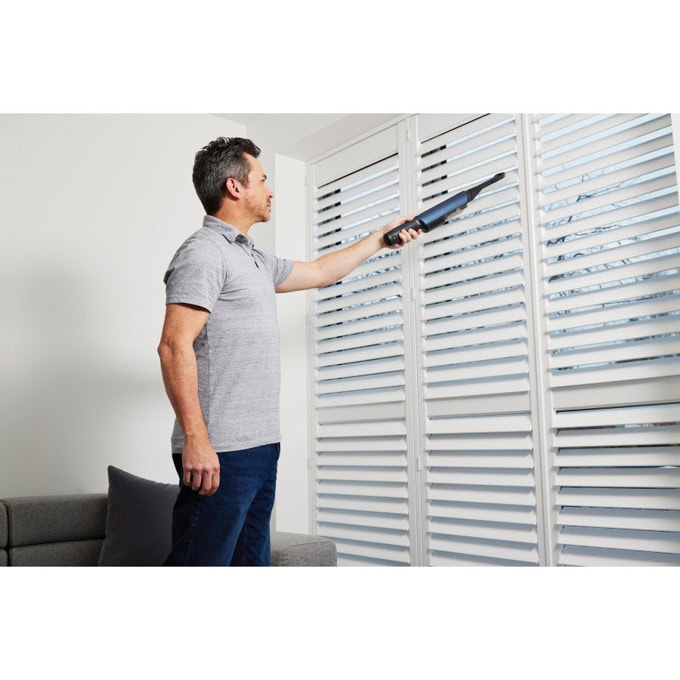 Прахосмукачка Shark WV270EU, ръчна, безжична, 160W, 100ml капацитет на контейнера, до 15 минути време на работа, миещ се филтър, 2 степени на мощност, черно-синя
