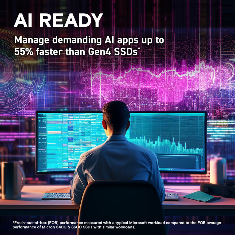 CRUCIAL T710 4TB PCIe Gen5 NVMe M.2 2280 SSD up to 14500 MB/s read and 13800 MB/s write - (1005) - CT4000T710SSD8
