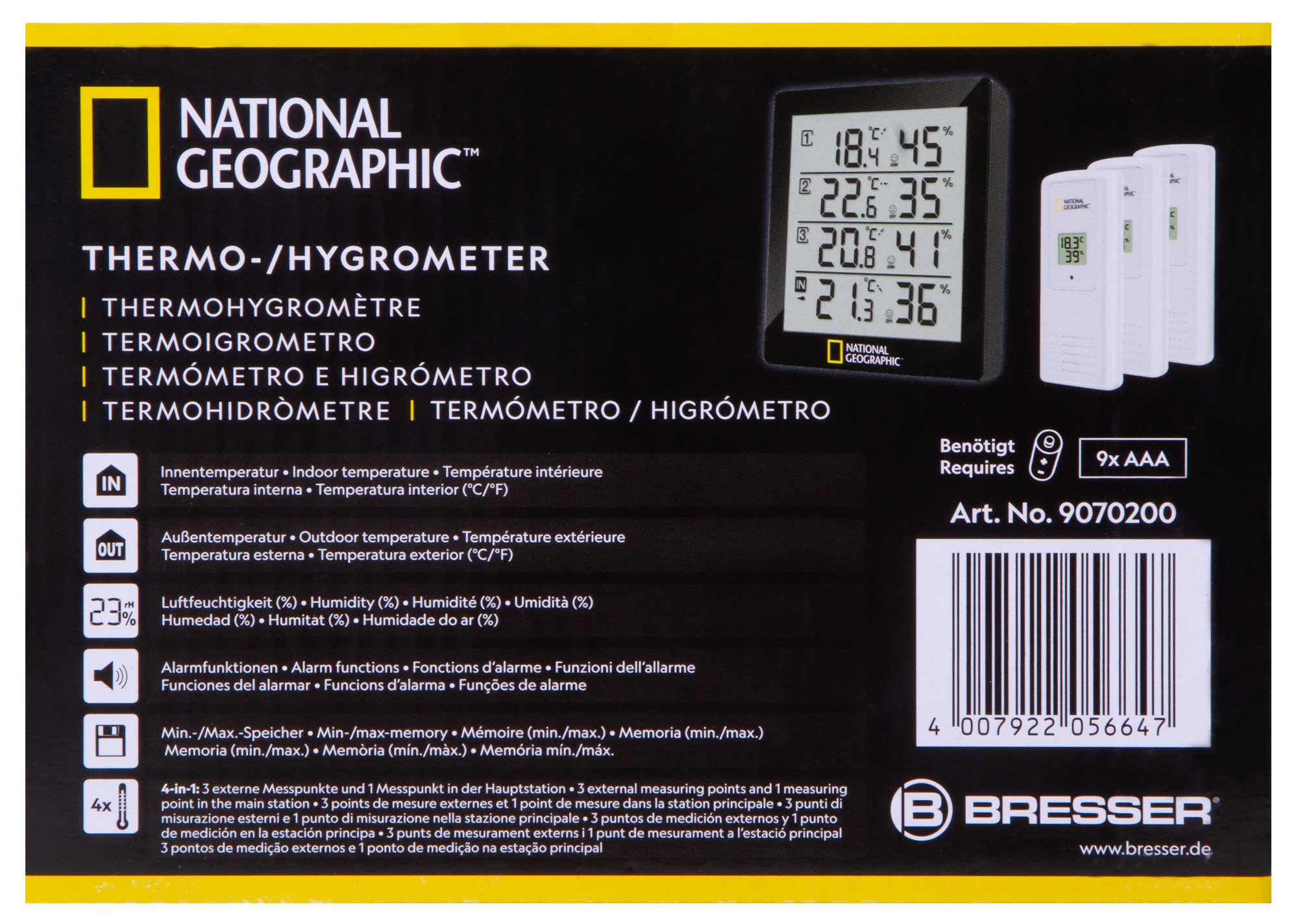 Термохигрометър с функция за измерване Bresser National Geographic, черен 4007922056647