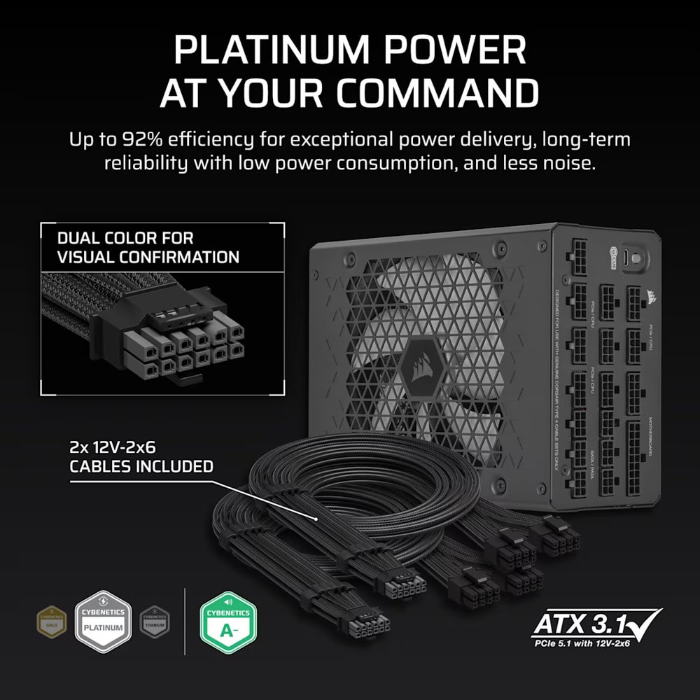 Захранване CORSAIR RM1000e, 1000 Watt, ATX 3.1, PCIe 5.1, Cybenetics GOLD Certified - CP-9020297-EU