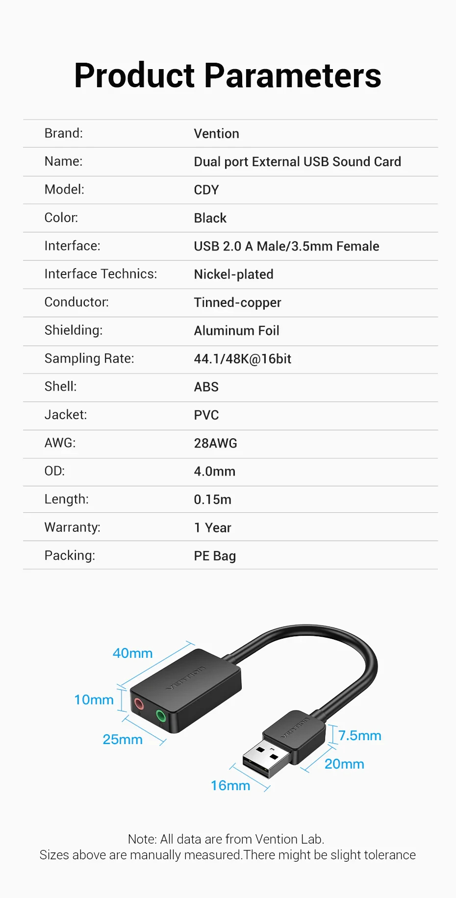 Vention външна звукова карта USB Sound card - Headphones, Mic, Silver - VAB-S13 - VAB-S13