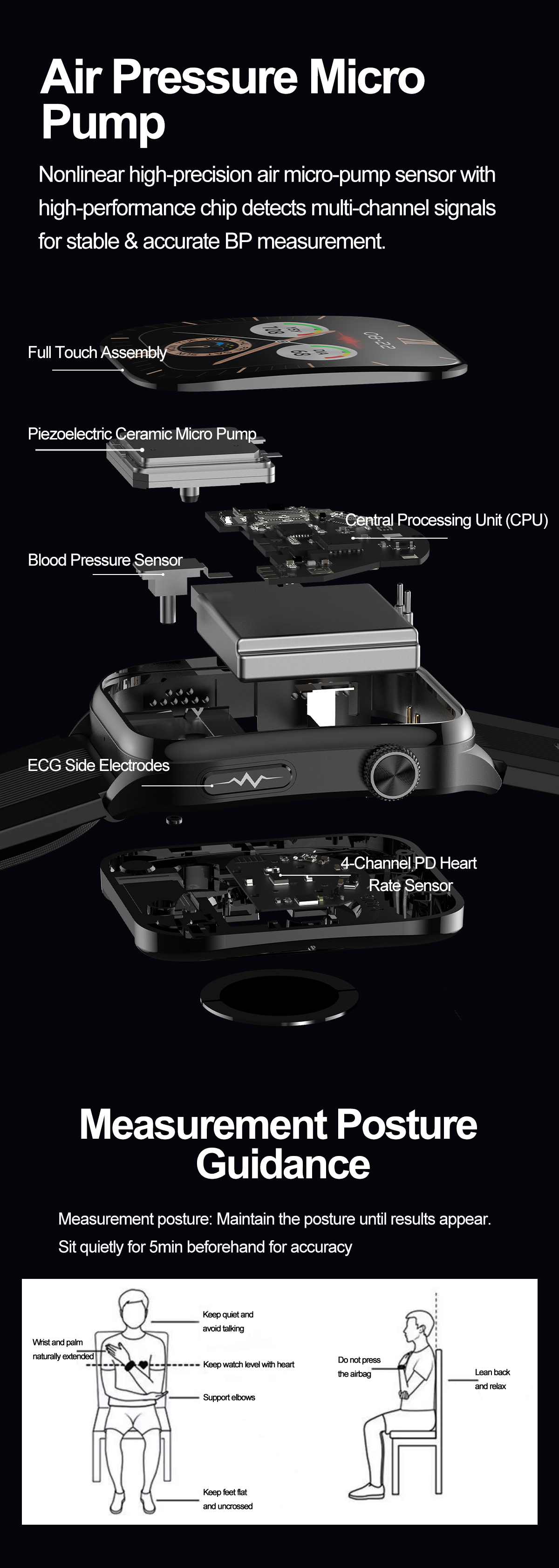 Смарт часовник за измерване на кръвно налягане с помпа и надуваема верижка ZILO SP300