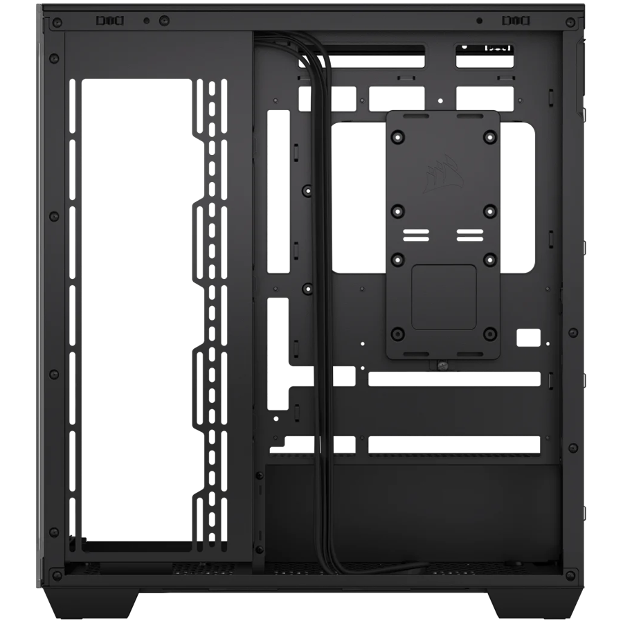 Интериорът на Corsair 3500X е много просторен и лесен за работа. Той поддържа дънни платки с форм-фактор ATX, microATX и Mini-ITX. Корпусът също така разполага с многобройни отвори за преминаване на кабели, което улеснява изграждането на чиста и подредена система.