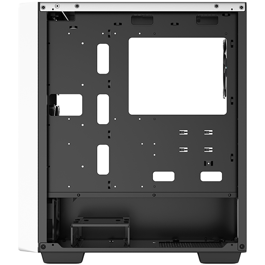 DeepCool CC560 WH е достатъчно просторна, за да побере ATX, Micro ATX и Mini-ITX дънни платки. Тя има и място за инсталиране на до седем разширителни карти. Освен това, кутията има два 2,5-инчови и два 3,5-инчови слота за устройства за съхранение.