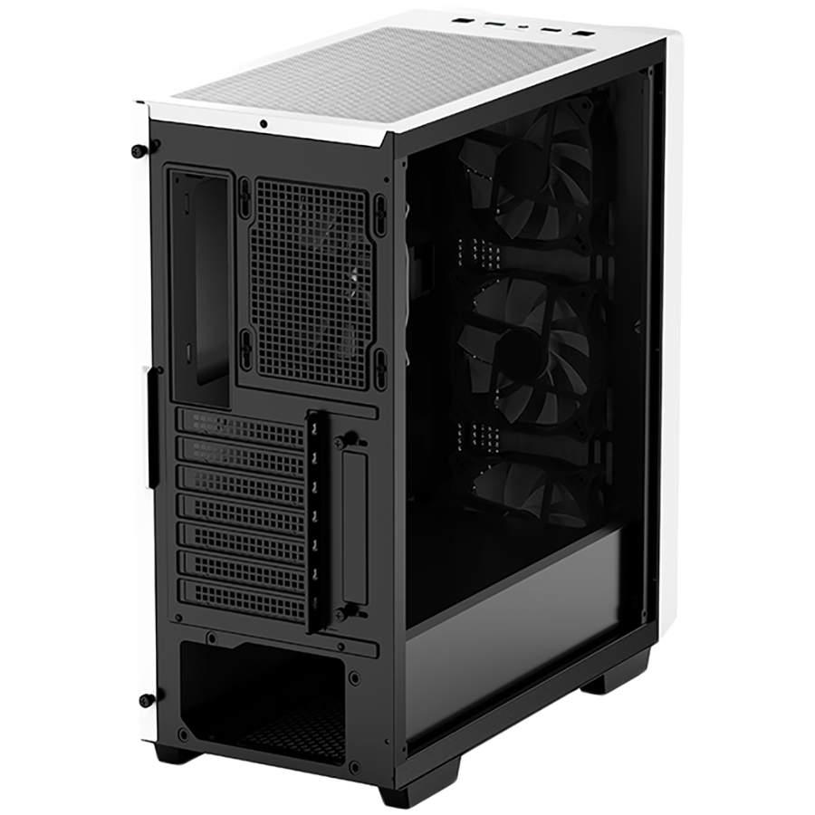 DeepCool CC560 WH е изработена от висококачествени материали, включително закалено стъкло, метал и ABS пластмаса. Тя има стилен и модерен дизайн, който ще се впише отлично във всяка геймърска стая. Кутията има бял цвят, който е много популярен сред геймърите.