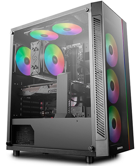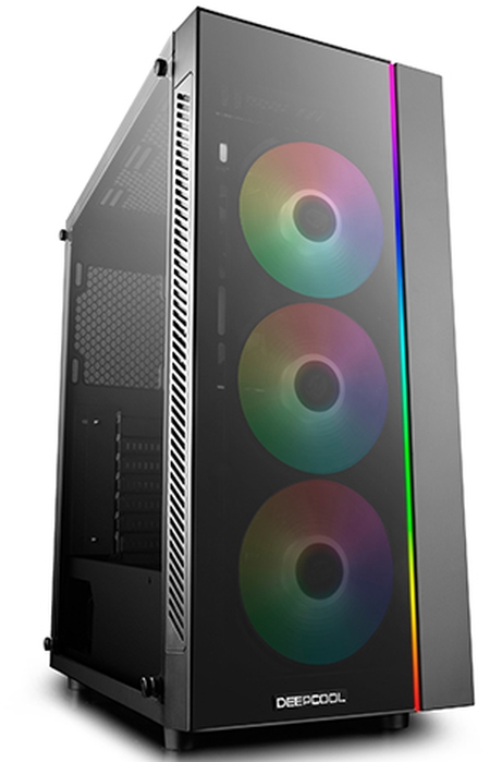 DeepCool MATREXX 55 3F A-RGB е средно голям компютърен корпус с елегантен дизайн и множество функции. Корпусът е изработен от стомана и пластмаса, а предният панел е с дизайн от закалено стъкло. Корпусът има три предварително инсталирани 120-милиметрови A-RGB вентилатора на предния панел, а има и място за до два 140-милиметрови вентилатора на горния панел и един 120-милиметров вентилатор на задния панел.
