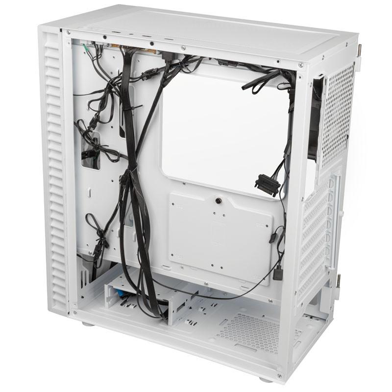 Кутията е с размери 449 x 390 x 200 mm и тежи 6.2 кг. Тя се предлага в бял цвят и има преден панел с RGB осветление, което може да бъде персонализирано с помощта на включения контролер.
