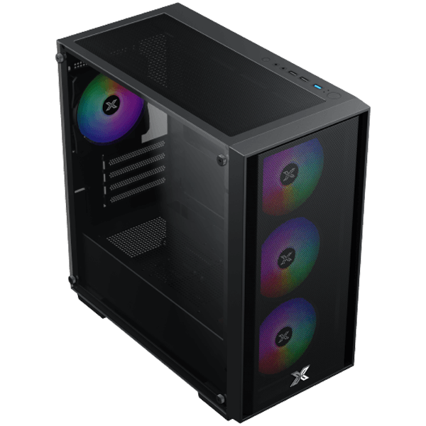 XIGMATEK NYX Air II има стилен и модерен дизайн, който ще се хареса на всеки геймър или професионалист. Предната решетка е изработена от метална мрежа, която осигурява отличен въздушен поток, докато закаленото стъкло от лявата страна Ви позволява да покажете вътрешността на Вашия компютър. Корпусът е с размери 411 x 386 x 200 мм и тежи 12 кг.
