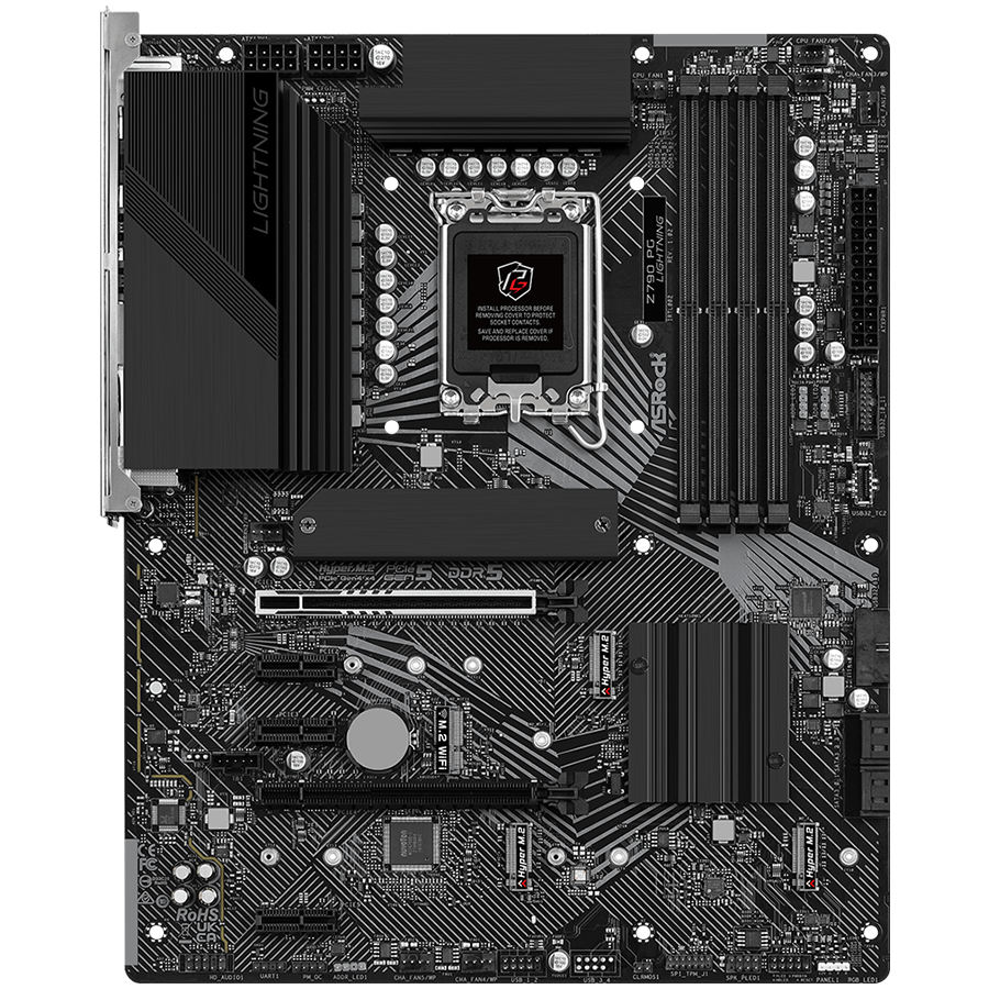 ASRock Z790 PG Lightning е дънна платка от висок клас, която е идеална за ентусиасти и овърклокъри. Тя е базирана на чипсета Intel Z790 и поддържа процесори Intel Core от 12-то и 13-то поколение. Дънната платка има четири слота за памет DDR5, които поддържат до 128 GB памет с честота до 6000 MHz. Тя има и два слота PCIe 5.0 x16, които поддържат най-новите графични карти.