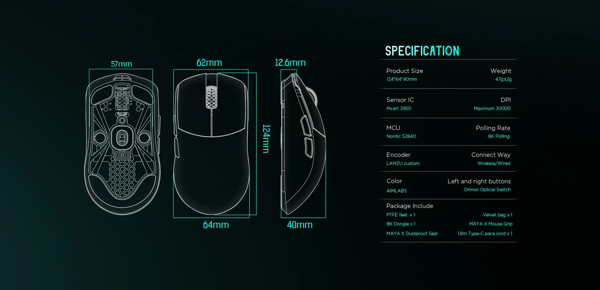 Lamzu Lamzu професионална геймърска мишка INCA 8K Wireless Mouse Black - LAMZU-INCA-BK