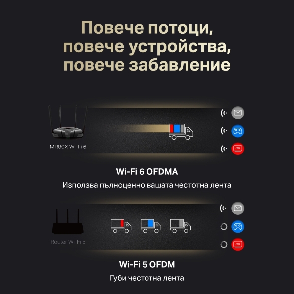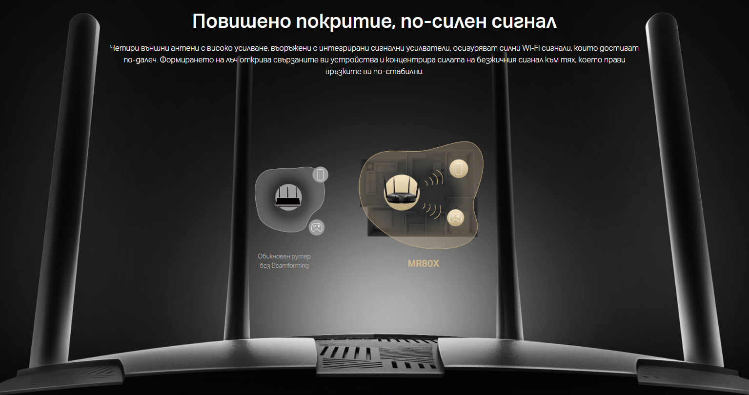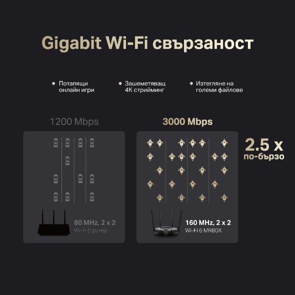 Mercusys MR60X, 1500Mbps, 2.4GHz (300 Mbps)/5GHz (1201 Mbps), Wireless AX, 2x 10/100/1000Mbps LAN, 1x 10/100/1000Mbps WAN, 4x външни антени