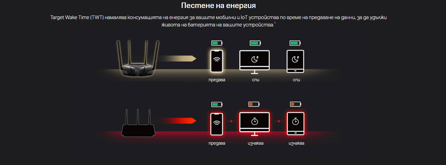 Рутер Asus ExpertWiFi EBR63, 3000Mbps, 2.4GHz(574 Mbps)/5GHz(2402 Mbps), Wireless AX, 3x LAN 100/1000, 1x WAN 100/1000, 4x външни антени, 90IG0870-MO3C00