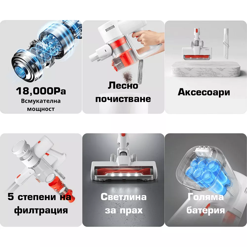 Прахосмукачка Rowenta X-Clean 10, вертикална, безжична, 200W, 790ml капацитет на контейнера, до 60 минути време на работа, система за самопочистване, бяла, GZ7035WO
