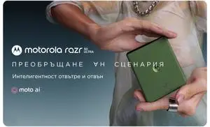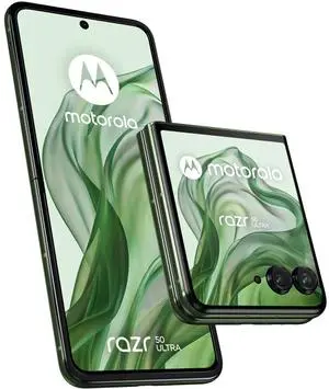 Motorola Razr 50 Ultra (зелен), поддържа 2 SIM карти, 6.9" (17.52cm) Foldable LTPO AMOLED 165Hz дисплей, осемядрен Snapdragon 8s Gen 3 3.0GHz, 12GB LPDDR5X, 512GB Flash памет, 50 + 50 & 32 Mpix камери, Android, 189g, PB1T0005PL