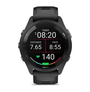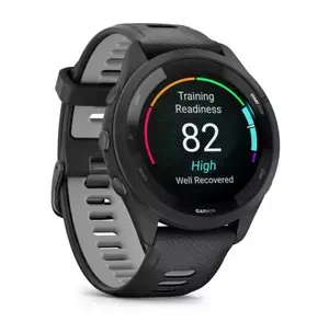 Смарт часовник Garmin Forerunner 265 Powder Gray, 32.5mm (1.3"), Bluetooth, Wi-Fi, до 13 дни време за работа, множество фитнес функции, профили за бягане, 8GB Flash памет, черен корпус със сиво-черна каишка, 010-02810-10