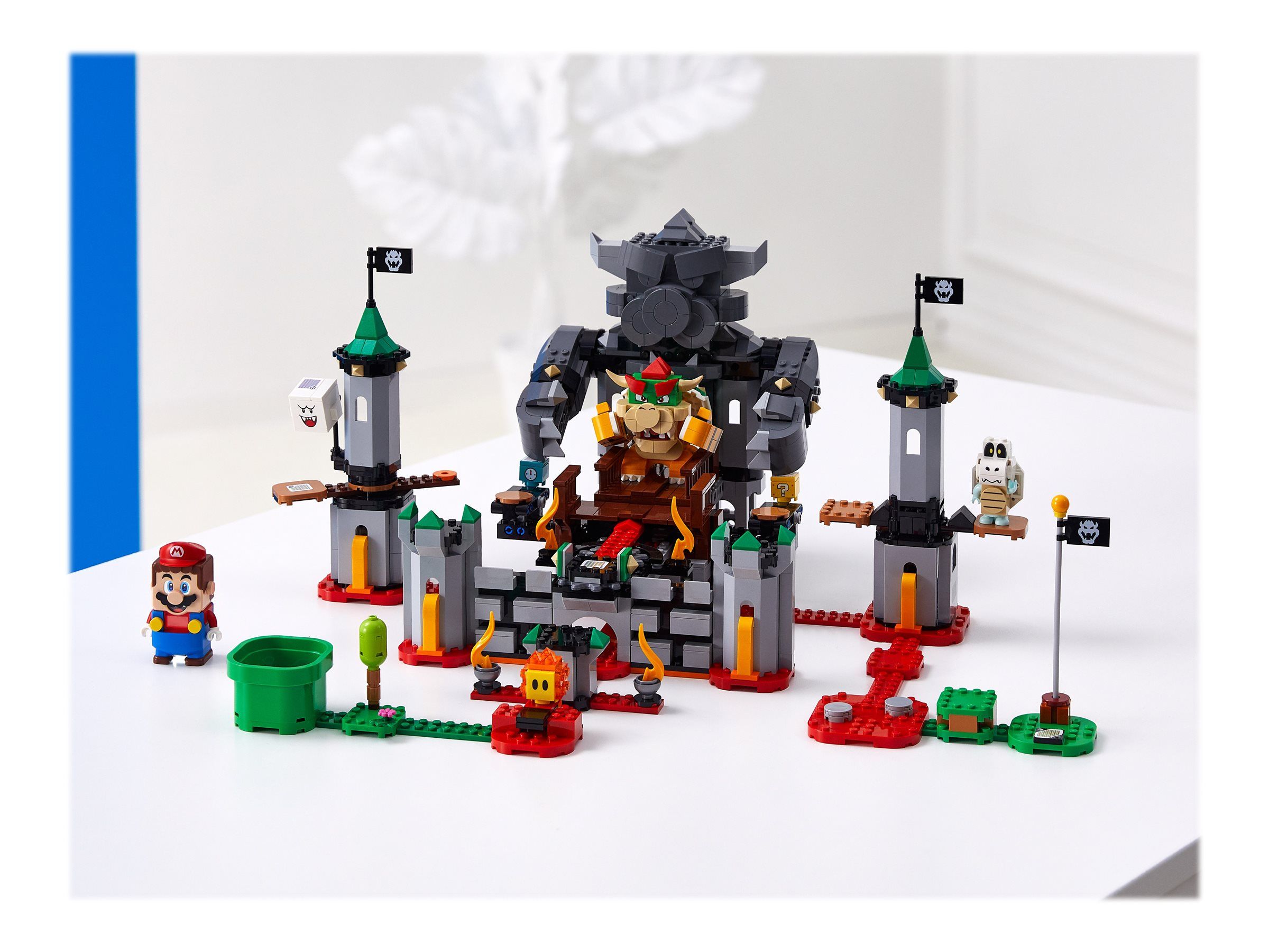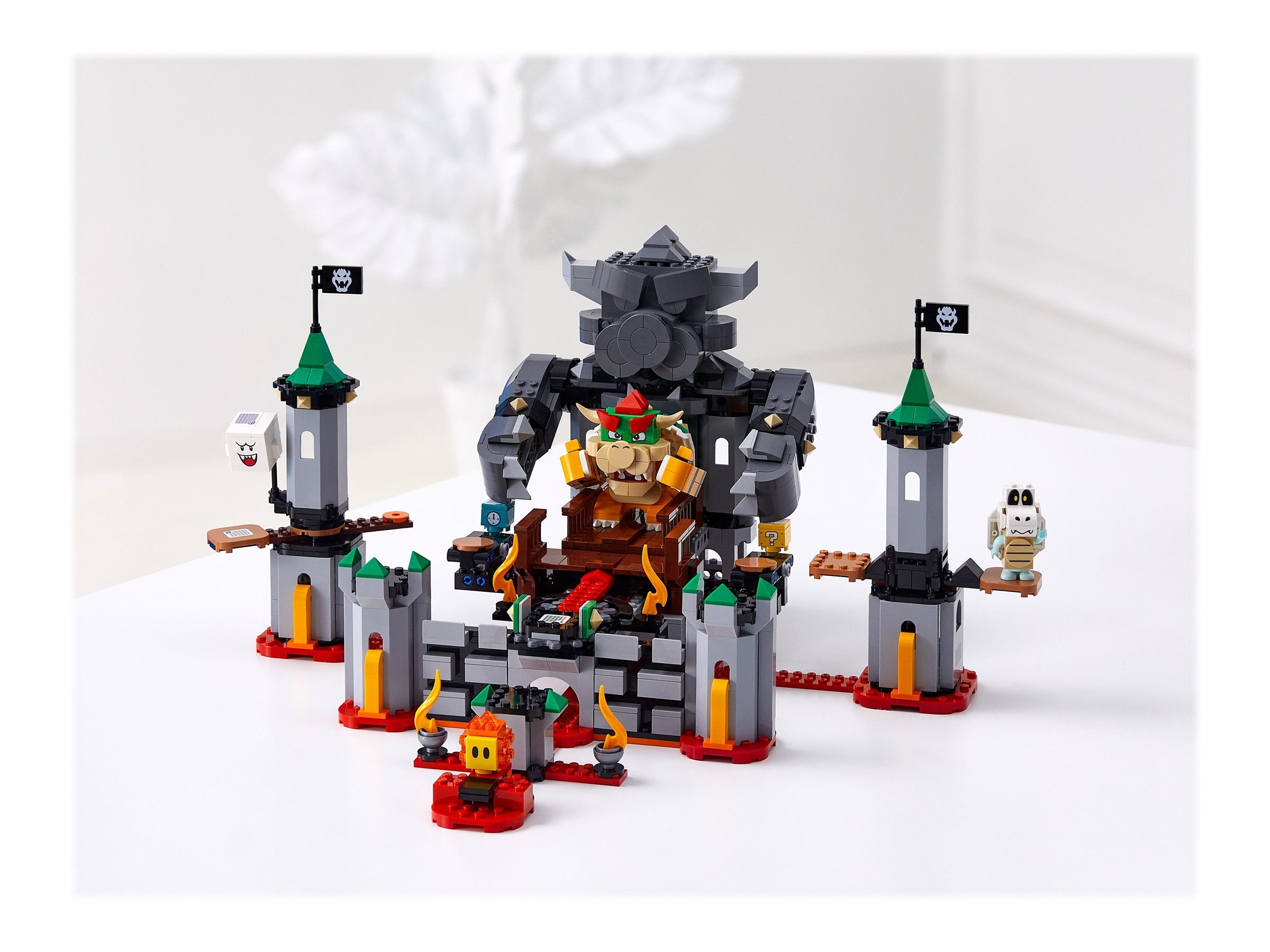 Комплектът включва кули с въртящи се и клатещи се платформи, плавници, за да вдигнете ръцете на Баузър и да стигнете до блока с въпросителния знак и блока с времето, клатещ се мост и фигурки на играчки като Баузър, Buu Huu, Bone Dry и Hothead.